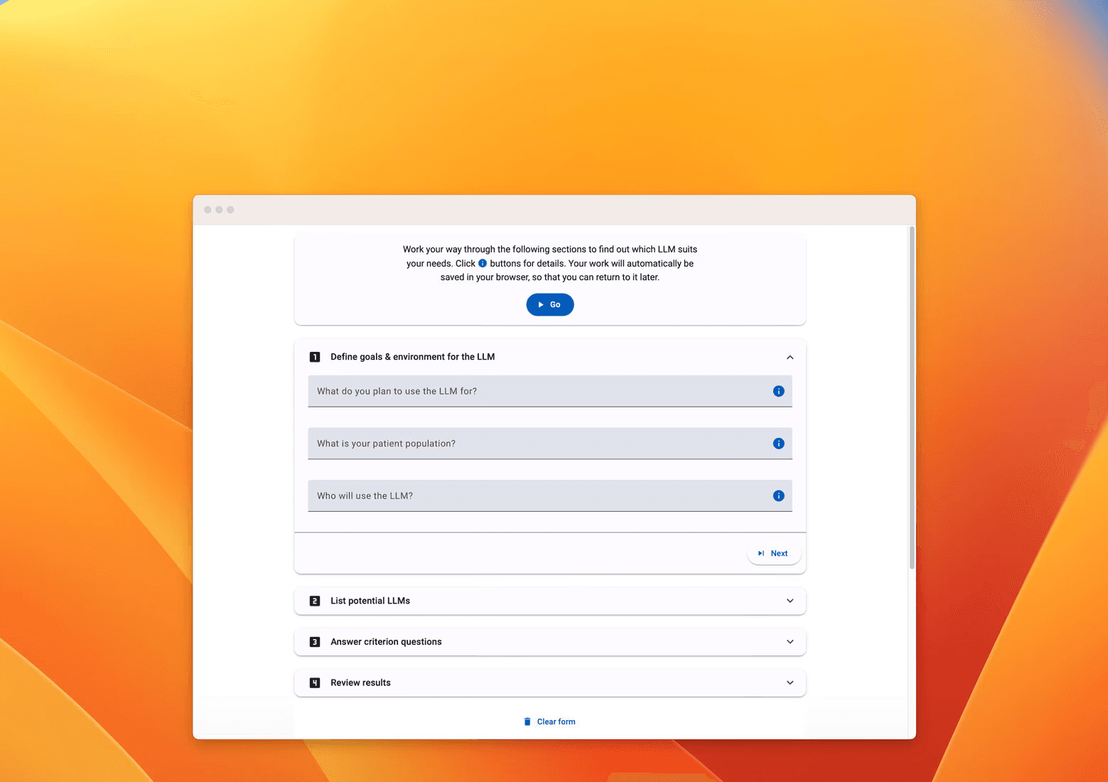 Designed for organisations with limited IT resources, this tool helps early adopters, educators, and associations evaluate the safety, effectiveness, and equity of Large Language Models (LLMs) for clinical practice. It provides adaptable criteria to navigate evolving regulations and rapidly advancing AI solutions.